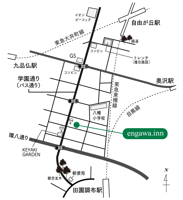 「自由が丘」駅もしくは「田園調布」駅からですと道がわかりやすいです。